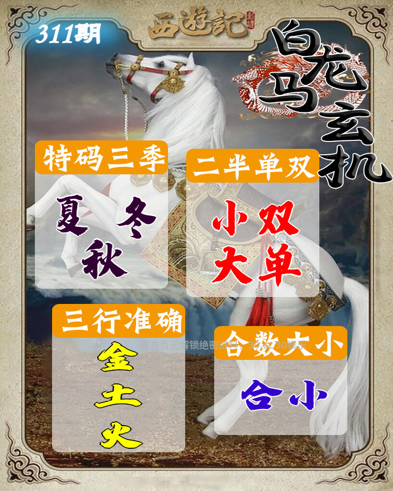 311期:七肖中特☛虎鸡蛇猴龙羊兔☚开:蛇37准